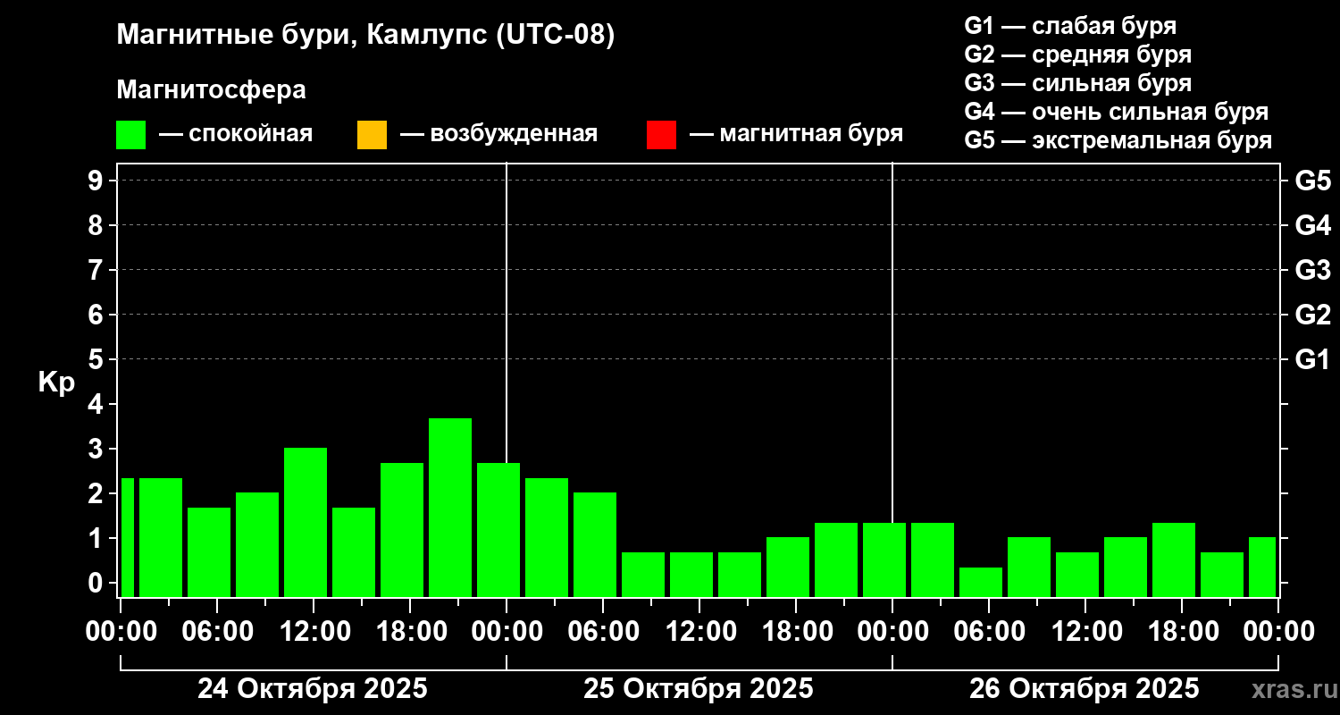 Магнитные бури в Камлупсе — 26 октября 2025 года