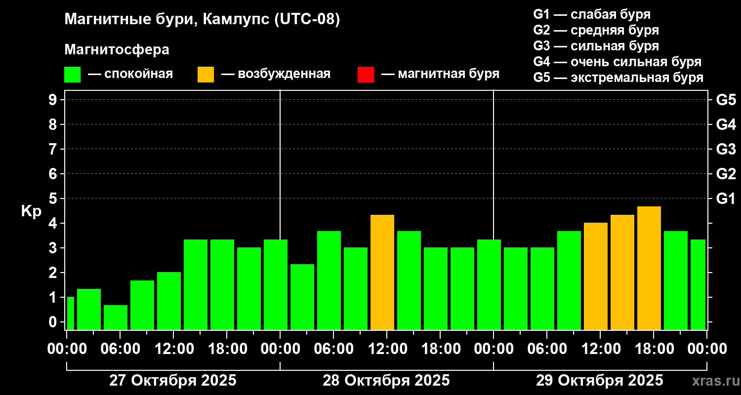 Магнитные бури в Камлупсе — 29 октября 2025 года