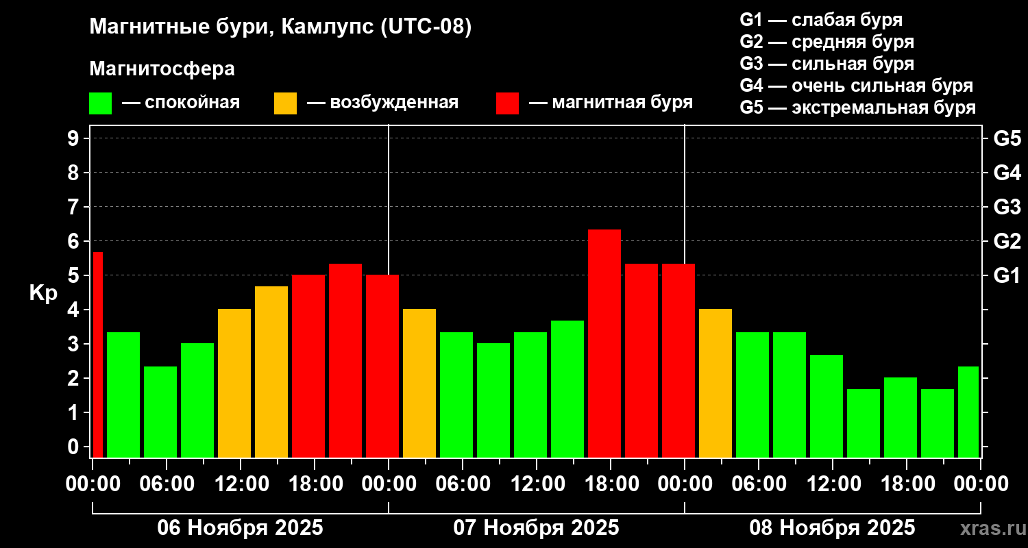 Магнитные бури в Камлупсе 8 ноября 2025 года