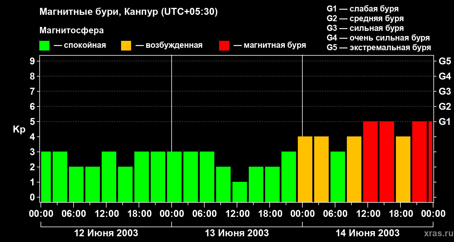 Магнитные бури в Канпуре — 14 июня 2003 года