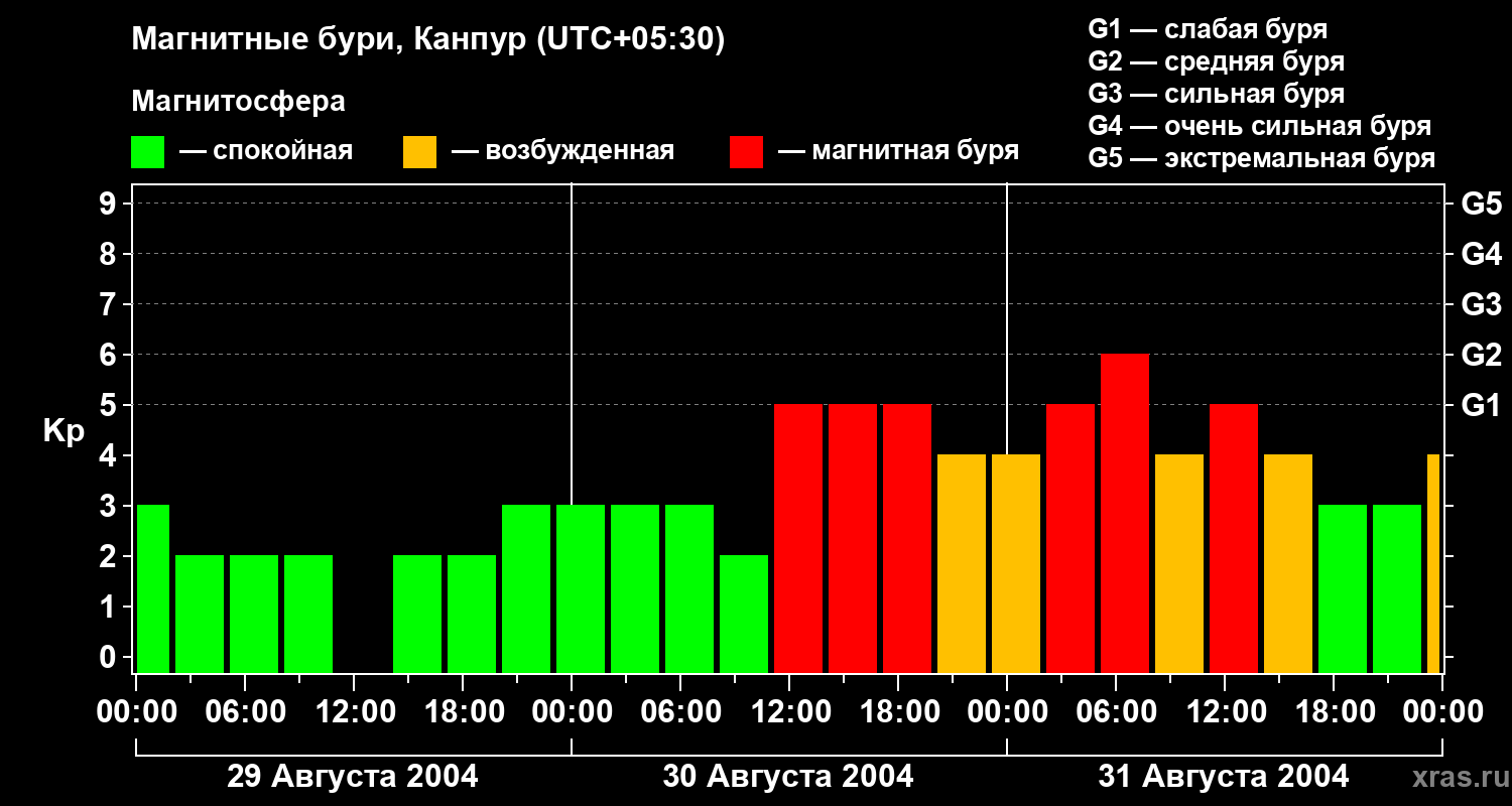 Магнитные бури в Канпуре в августе 2004 года