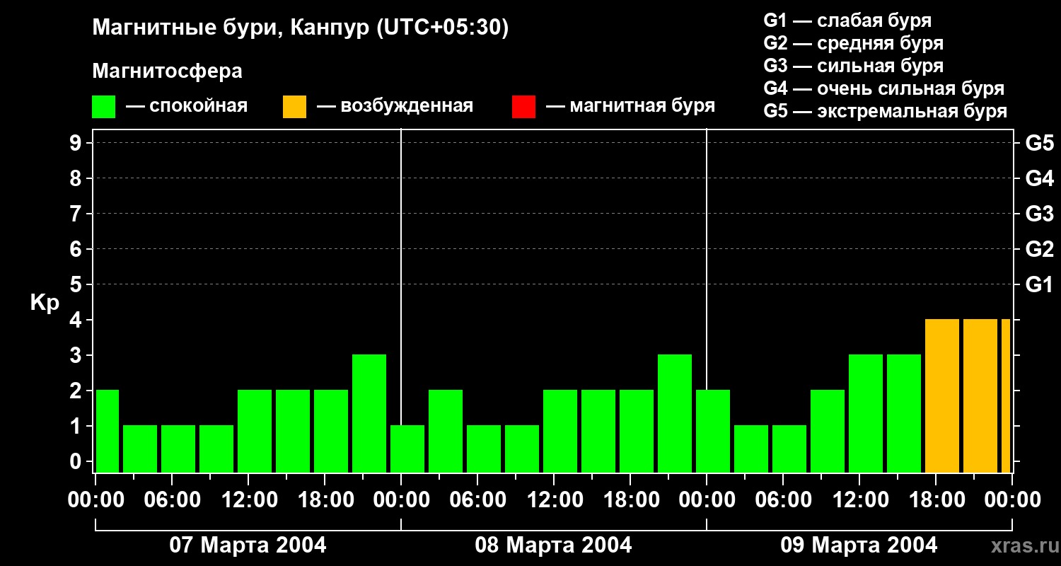 Магнитные бури в Канпуре — 9 марта 2004 года