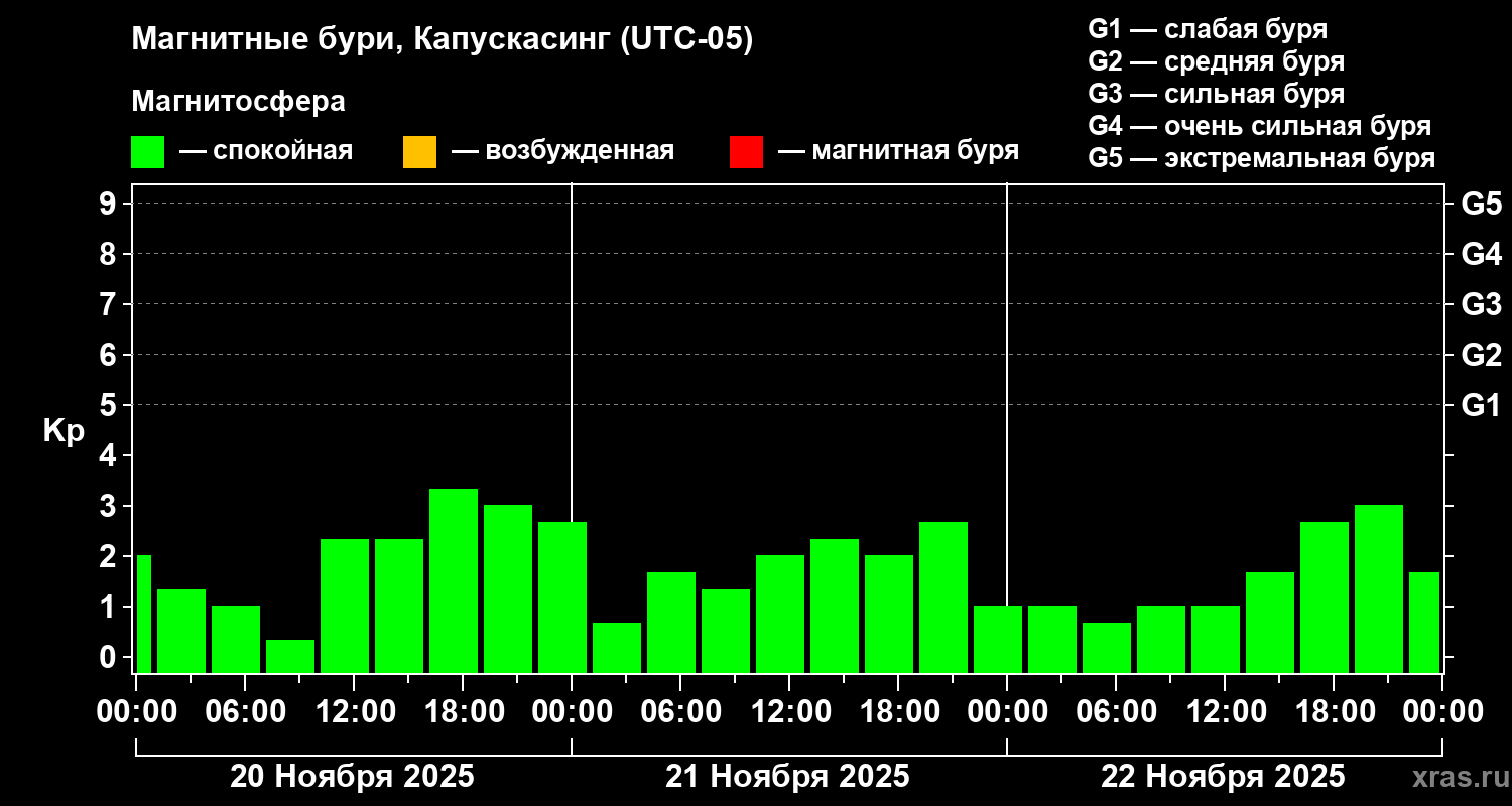 Магнитные бури в Капускасинге 22 ноября 2025 года