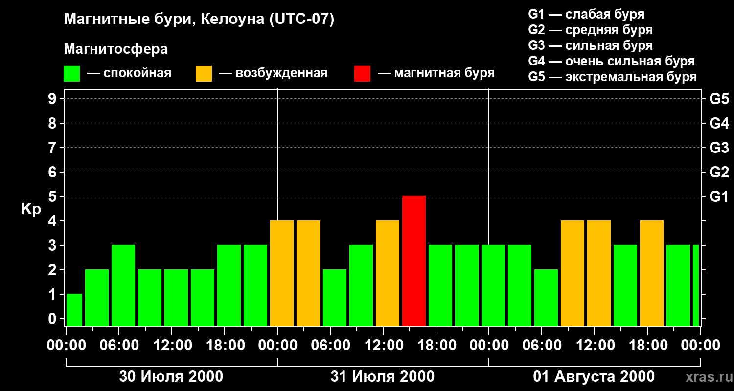 Магнитные бури в Келоуне — 1 августа 2000 года