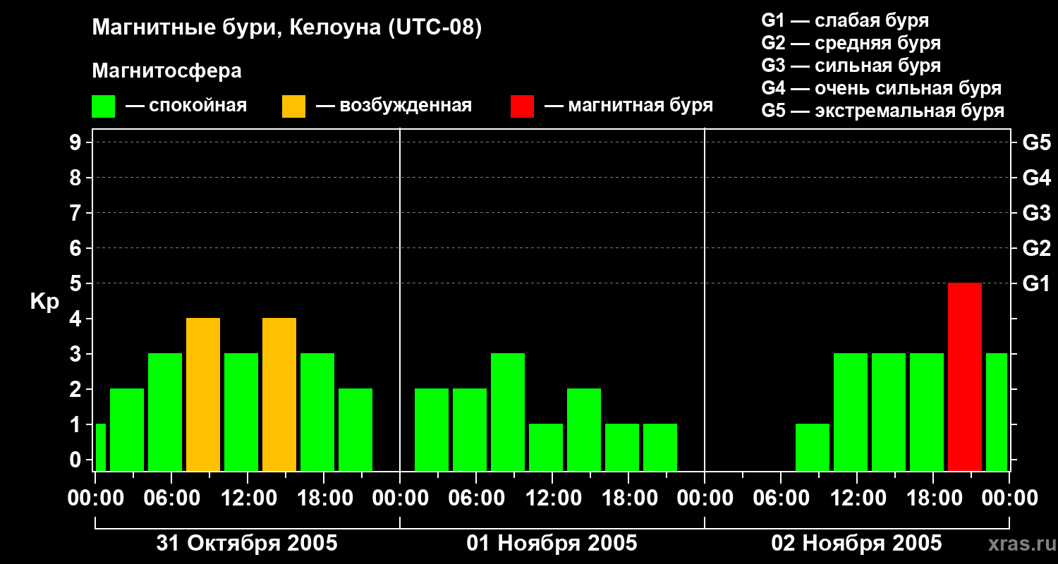 Магнитные бури в Келоуне 2 ноября 2005 года
