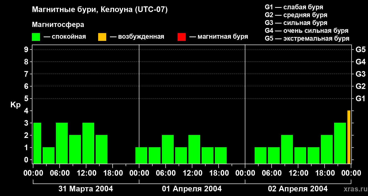 Магнитные бури в Келоуне — 2 апреля 2004 года