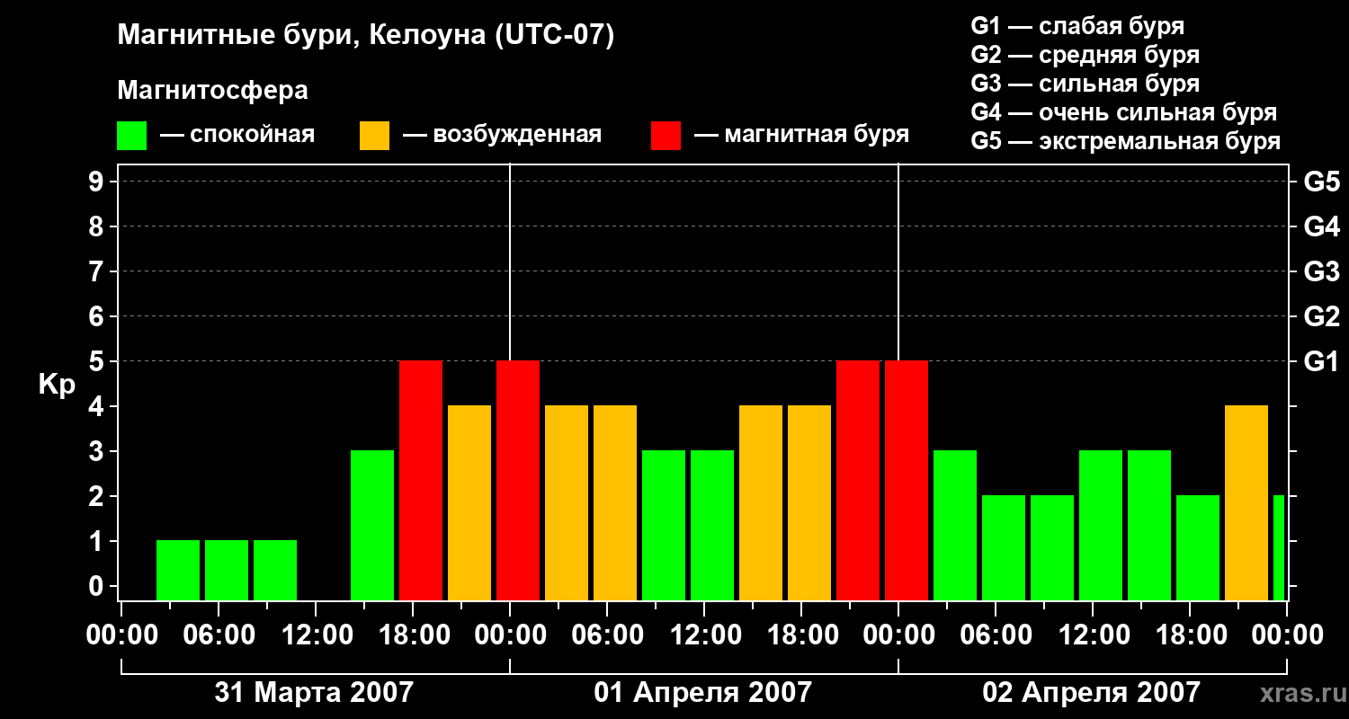 Магнитные бури в Келоуне 2 апреля 2007 года