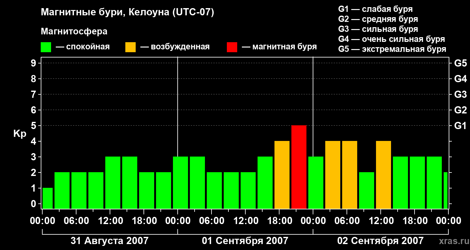Магнитные бури в Келоуне — 2 сентября 2007 года