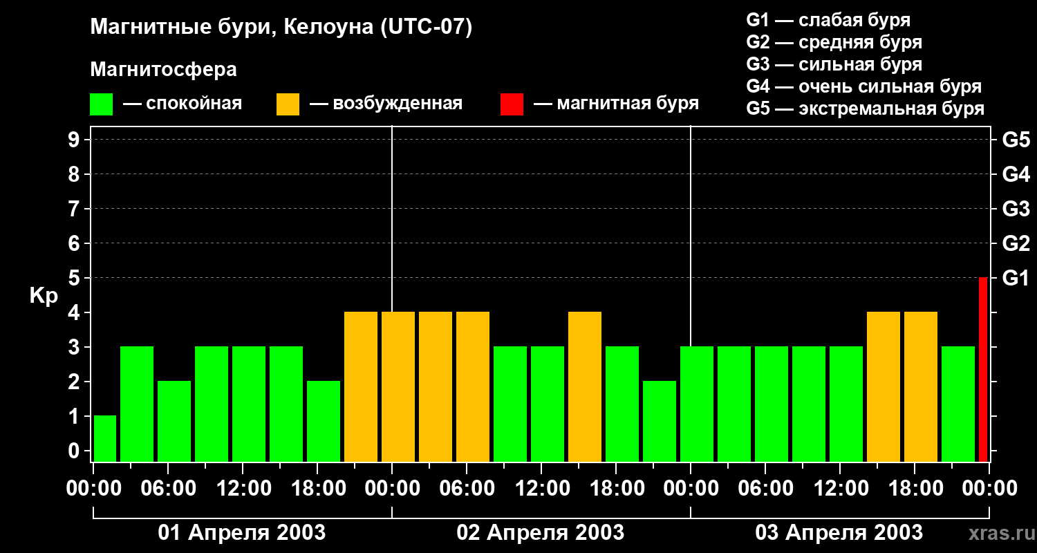 Магнитные бури в Келоуне — 3 апреля 2003 года