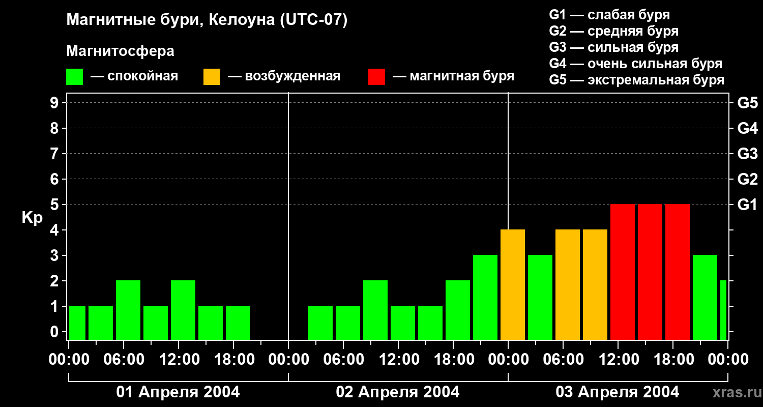 Магнитные бури в Келоуне — 3 апреля 2004 года