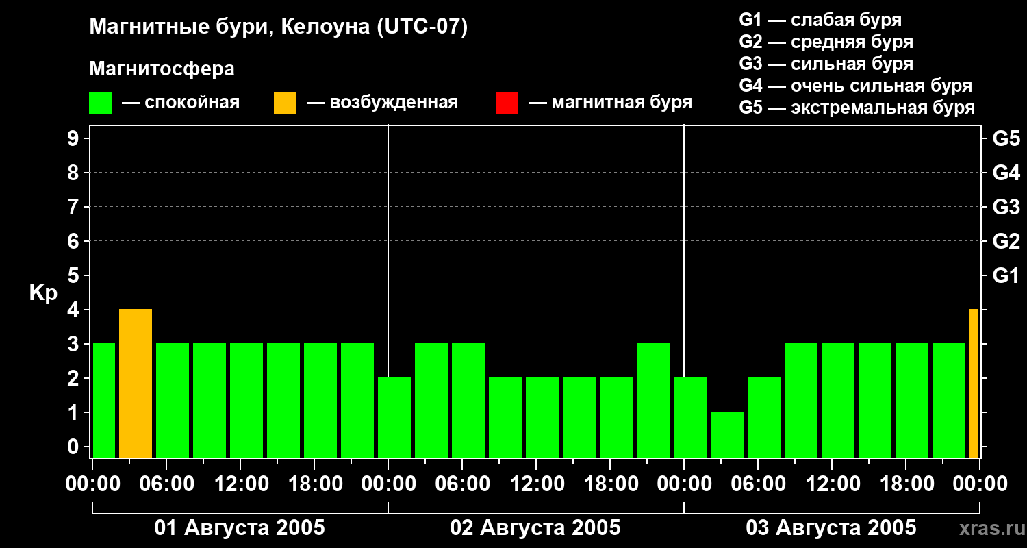Магнитные бури в Келоуне — 3 августа 2005 года