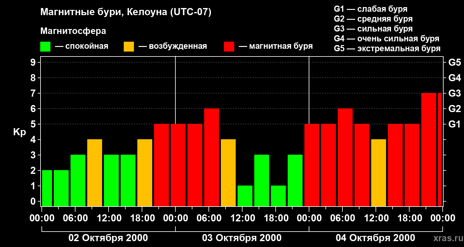 Магнитные бури в Келоуне — 4 октября 2000 года