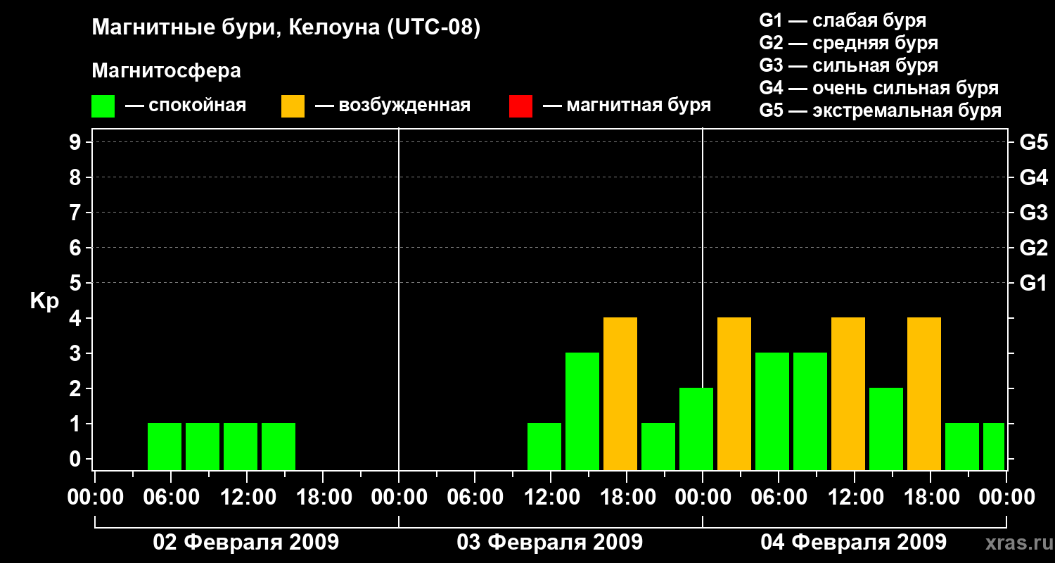 Магнитные бури в Келоуне — 4 февраля 2009 года