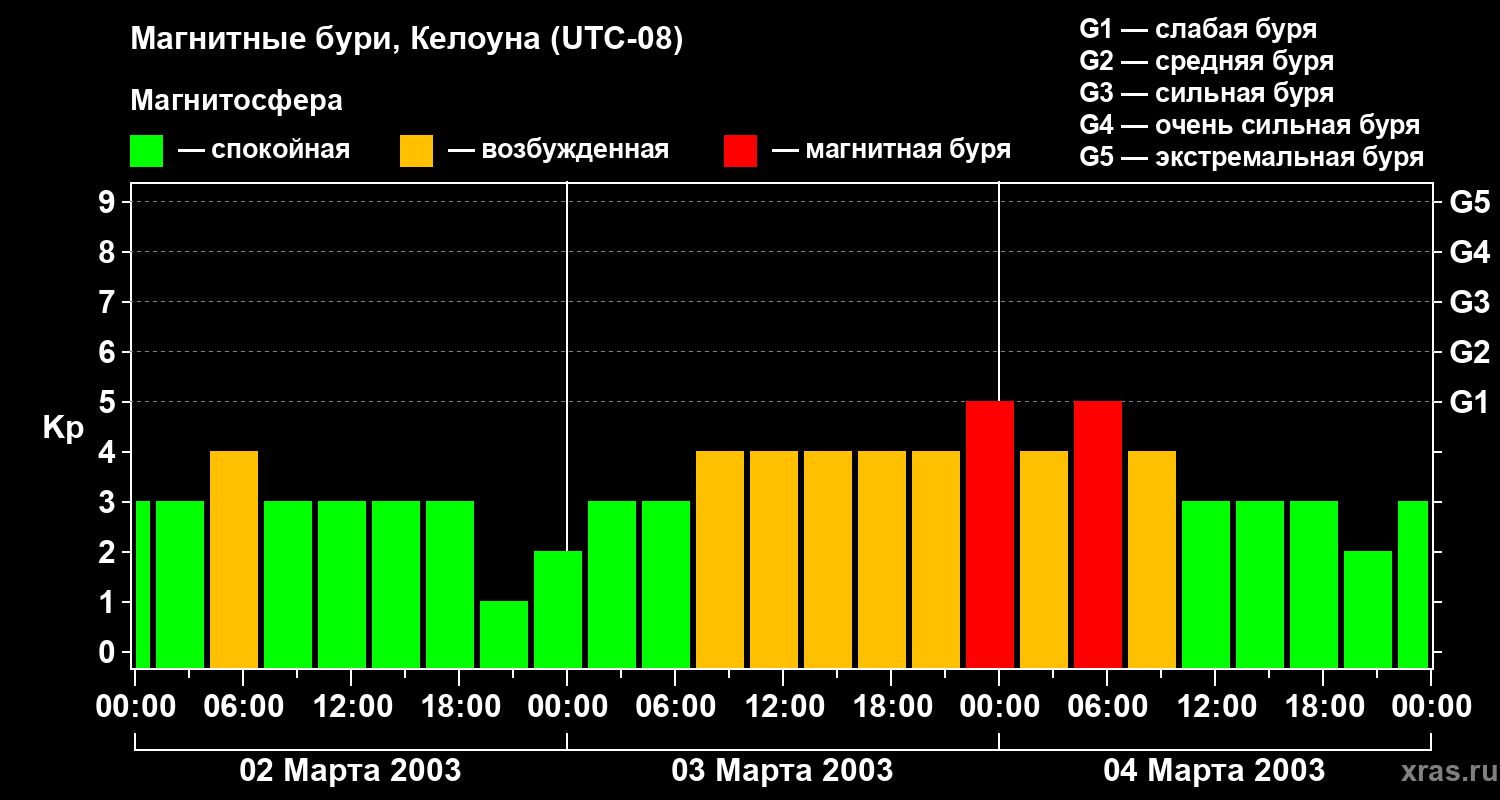 Магнитные бури в Келоуне — 4 марта 2003 года