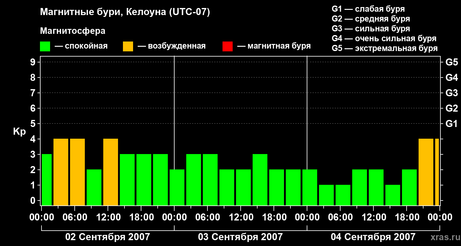 Магнитные бури в Келоуне 4 сентября 2007 года