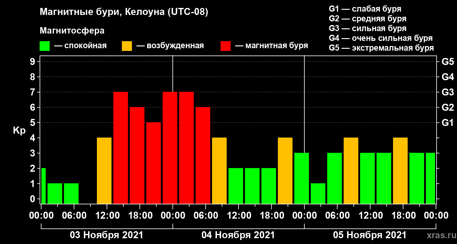 Магнитные бури в Келоуне 5 ноября 2021 года