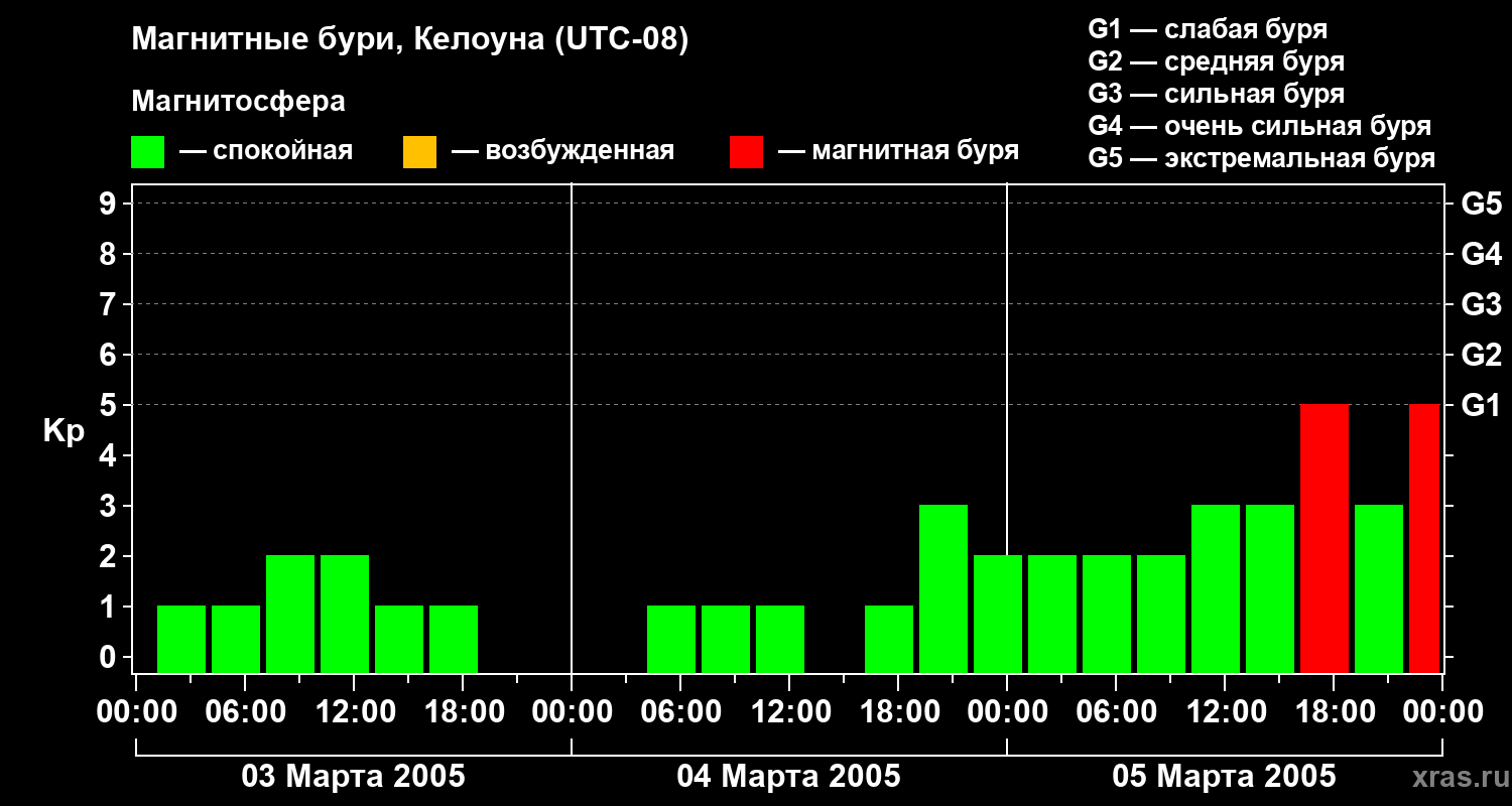 Магнитные бури в Келоуне — 5 марта 2005 года