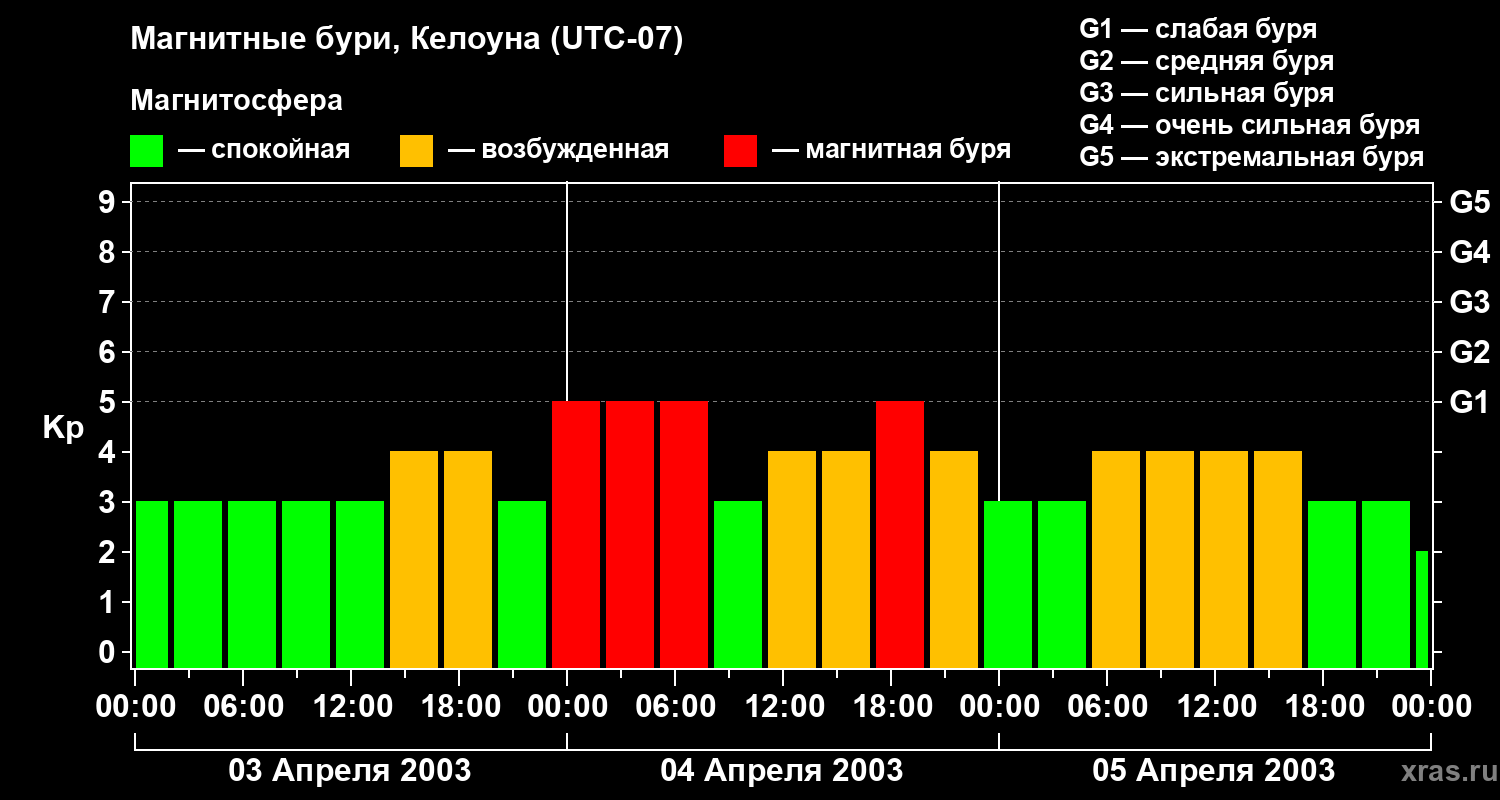 Магнитные бури в Келоуне — 5 апреля 2003 года
