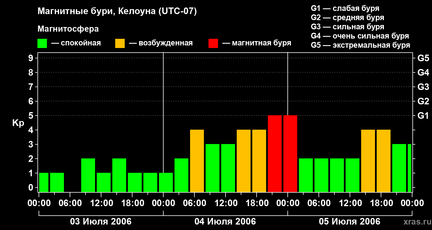 Магнитные бури в Келоуне — 5 июля 2006 года
