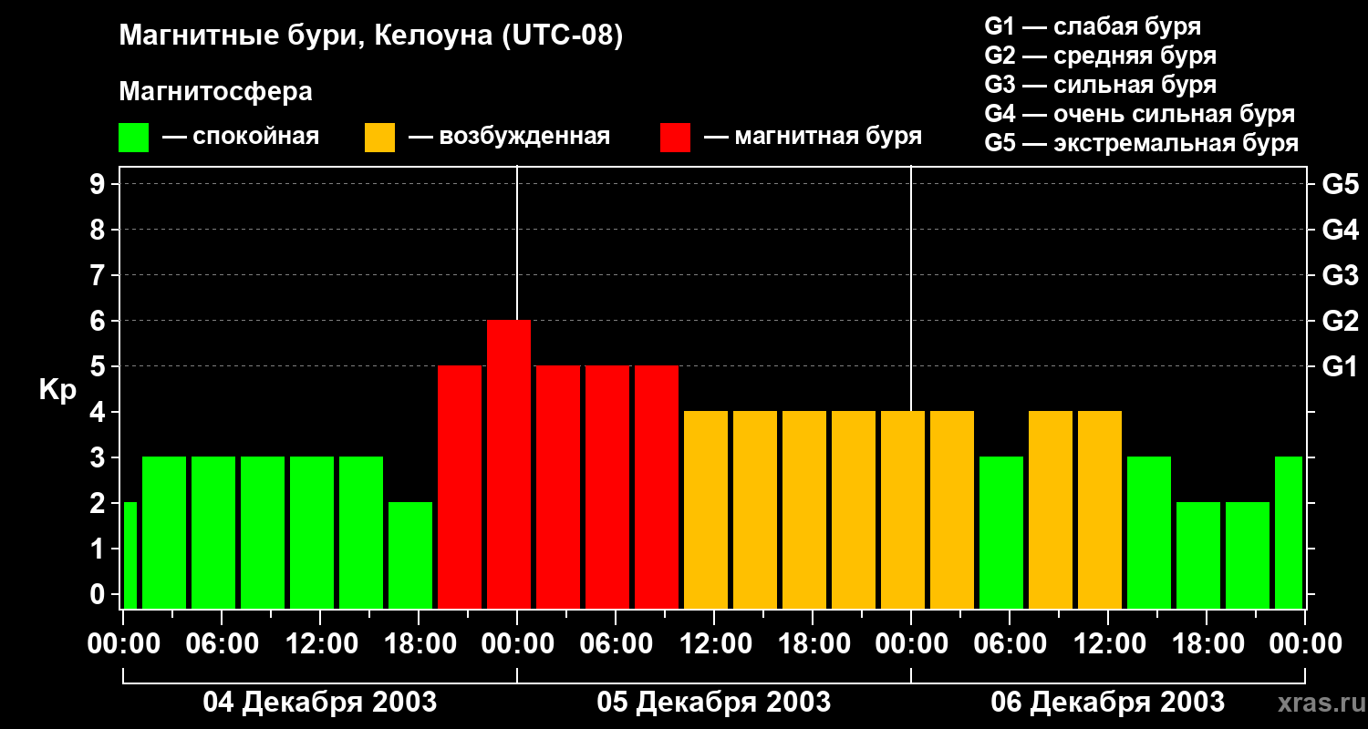 Магнитные бури в Келоуне — 6 декабря 2003 года