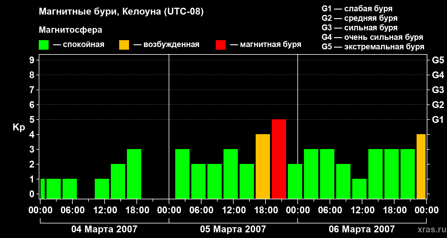 Магнитные бури в Келоуне — 6 марта 2007 года