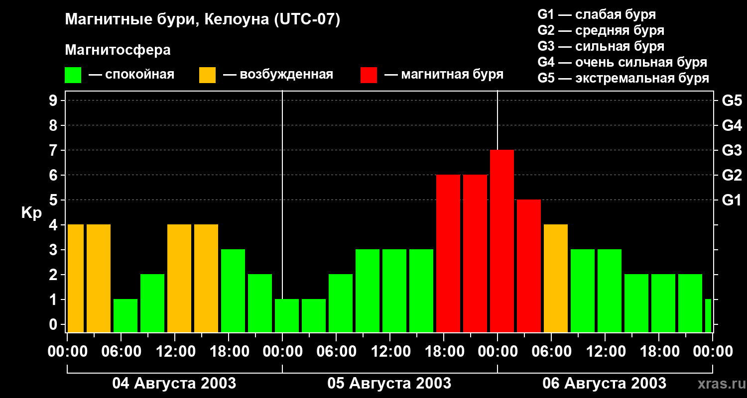Магнитные бури в Келоуне — 6 августа 2003 года