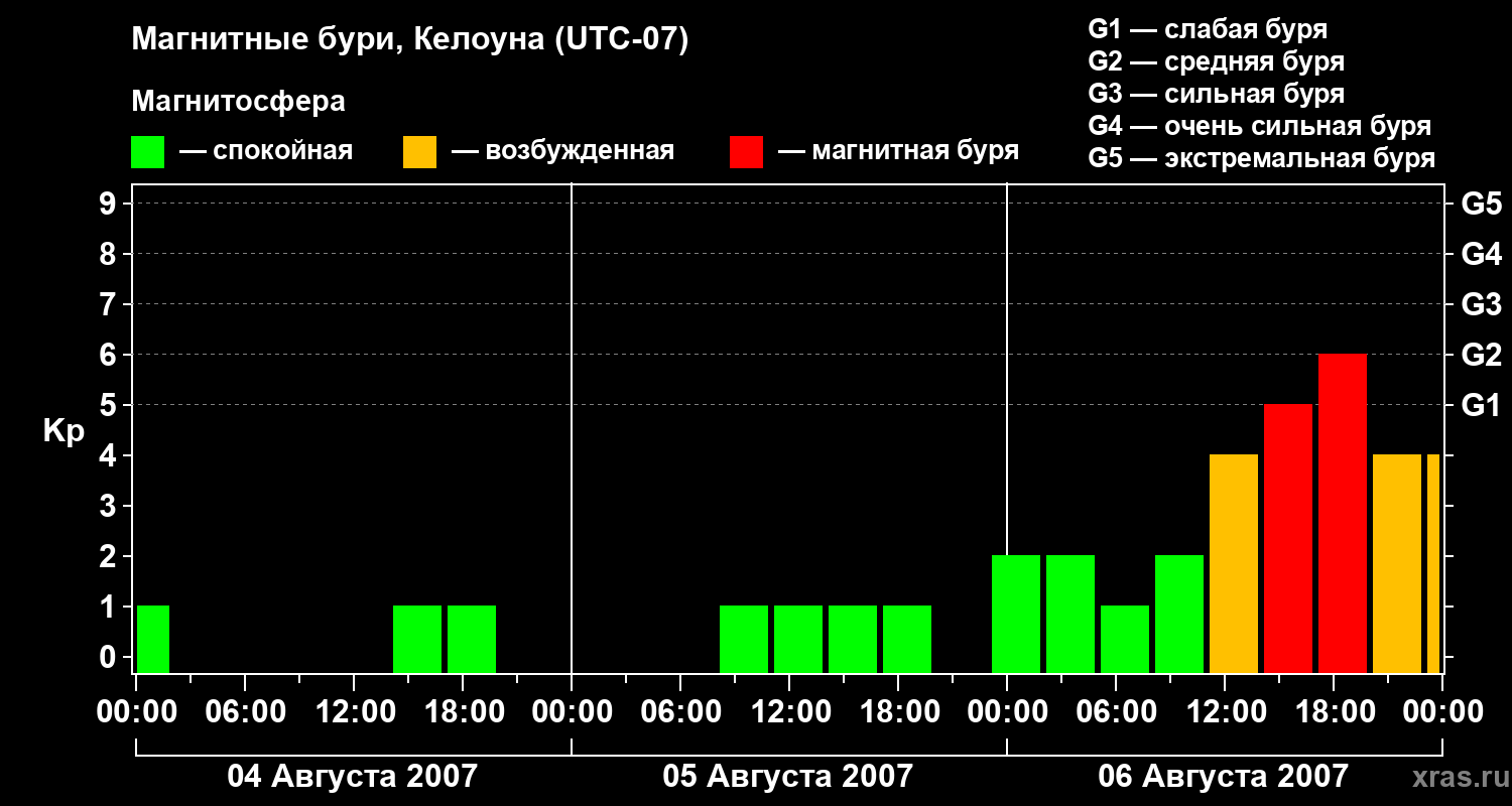 Магнитные бури в Келоуне — 6 августа 2007 года