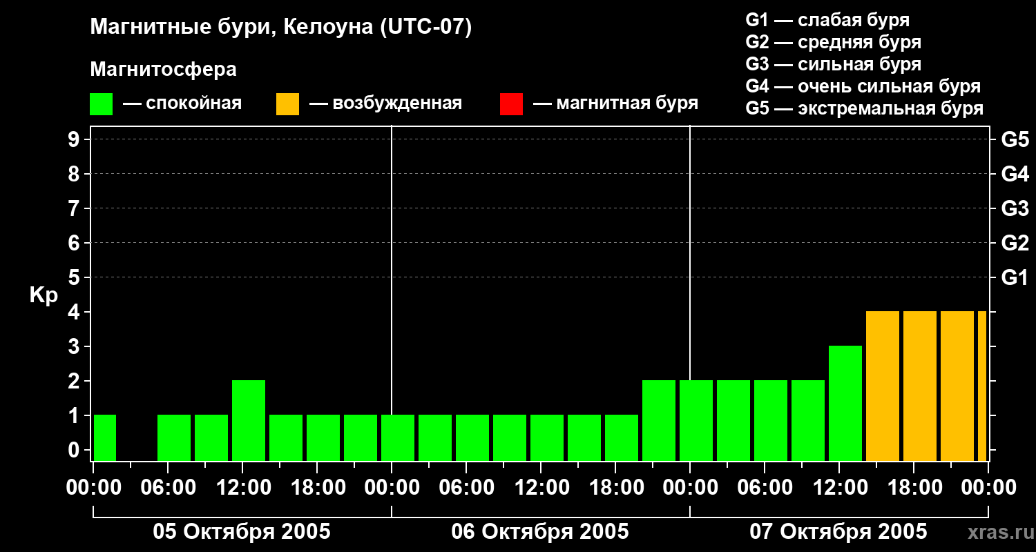 Магнитные бури в Келоуне — 7 октября 2005 года
