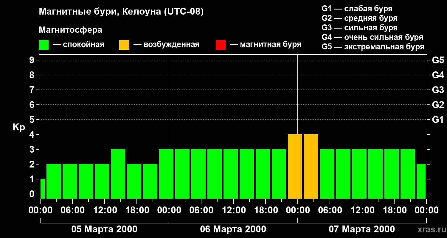 Магнитные бури в Келоуне — 7 марта 2000 года