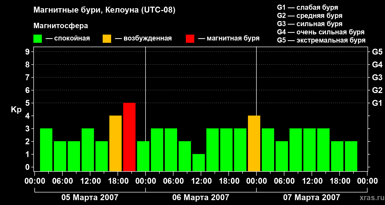 Магнитные бури в Келоуне — 7 марта 2007 года