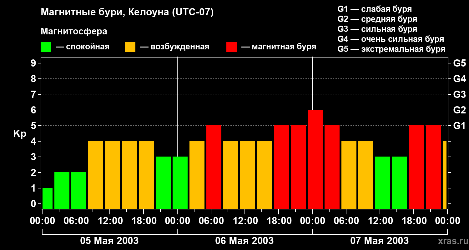 Магнитные бури в Келоуне — 7 мая 2003 года