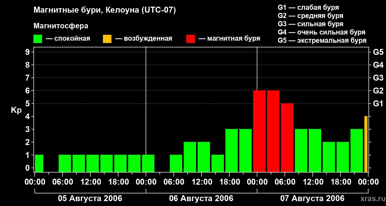 Магнитные бури в Келоуне — 7 августа 2006 года