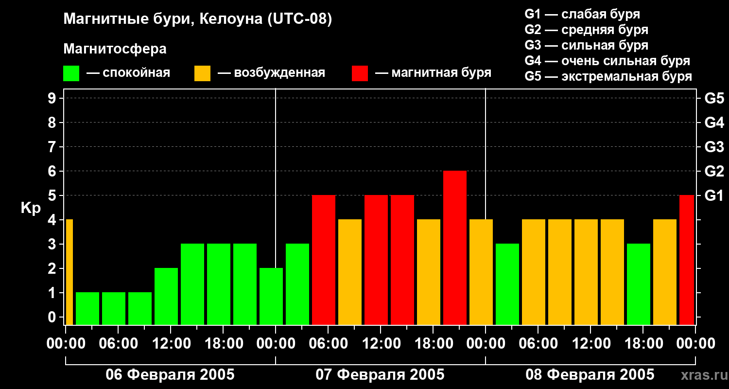 Магнитные бури в Келоуне — 8 февраля 2005 года