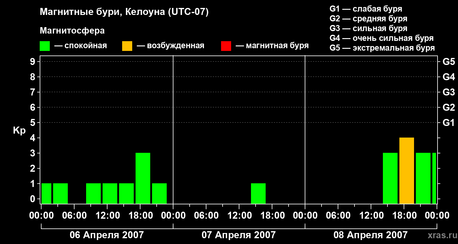 Магнитные бури в Келоуне — 8 апреля 2007 года