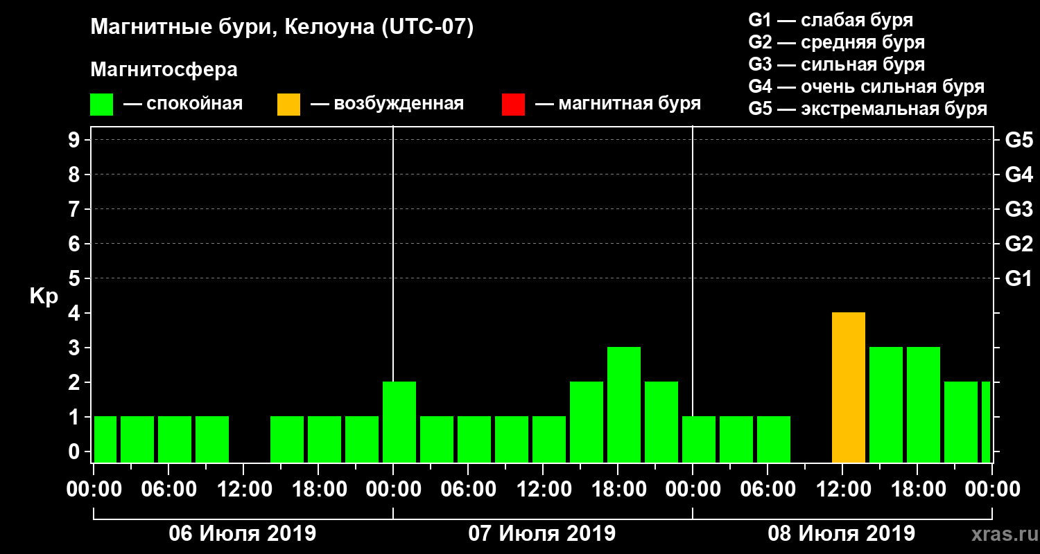 Магнитные бури в Келоуне — 8 июля 2019 года