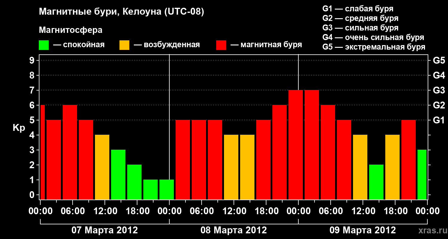 Магнитные бури в Келоуне 9 марта 2012 года