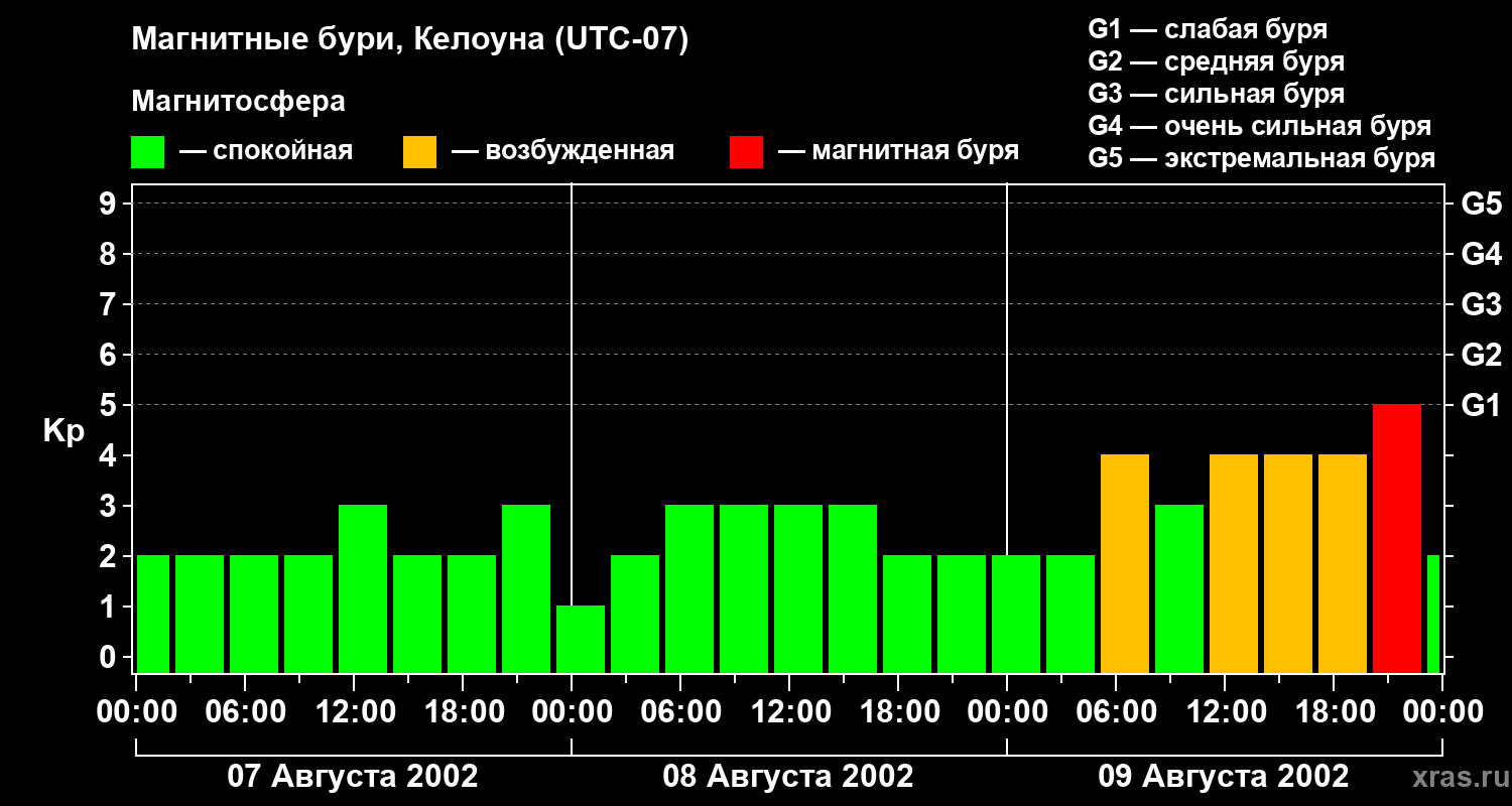 Магнитные бури в Келоуне — 9 августа 2002 года