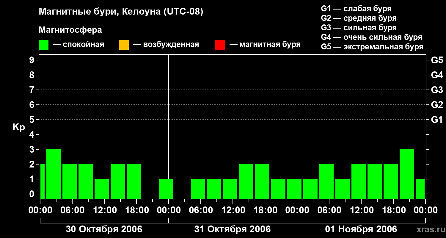 Магнитные бури в Келоуне 1 ноября 2006 года