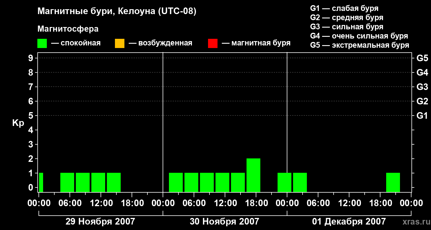 Магнитные бури в Келоуне — 1 декабря 2007 года