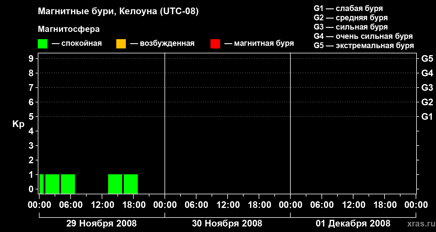 Магнитные бури в Келоуне — 1 декабря 2008 года