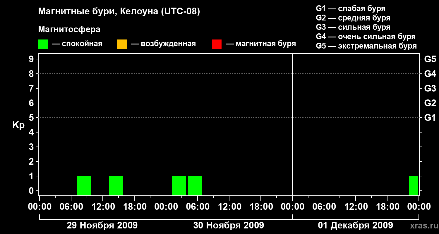 Магнитные бури в Келоуне — 1 декабря 2009 года