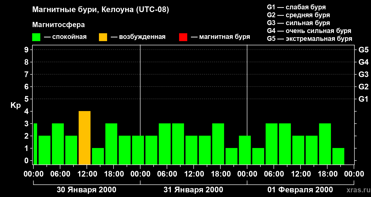 Магнитные бури в Келоуне 1 февраля 2000 года