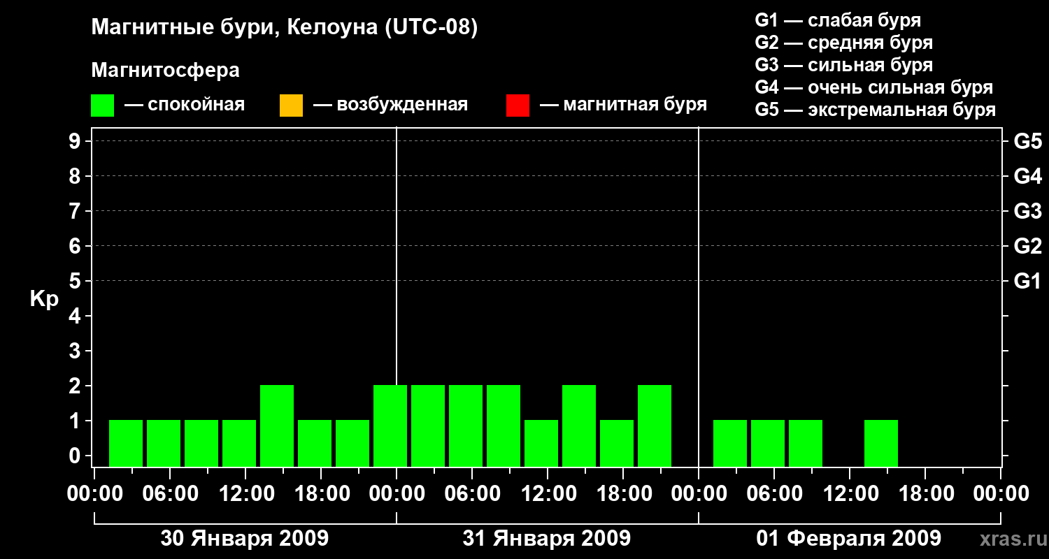 Магнитные бури в Келоуне 1 февраля 2009 года