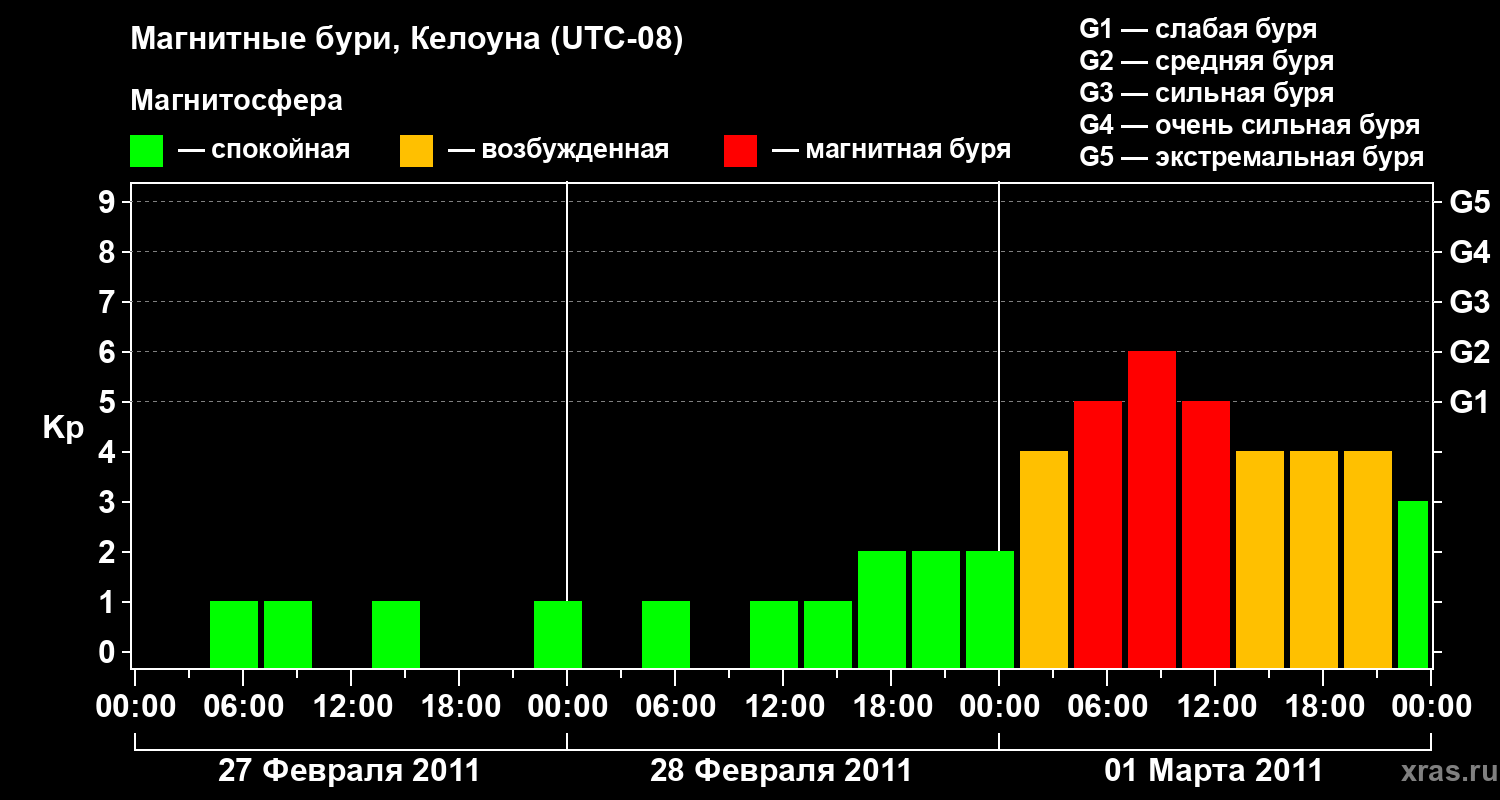 Магнитные бури в Келоуне — 1 марта 2011 года