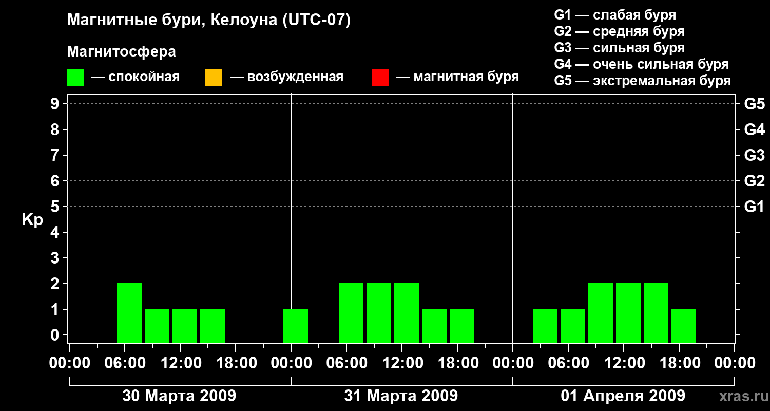 Магнитные бури в Келоуне — 1 апреля 2009 года