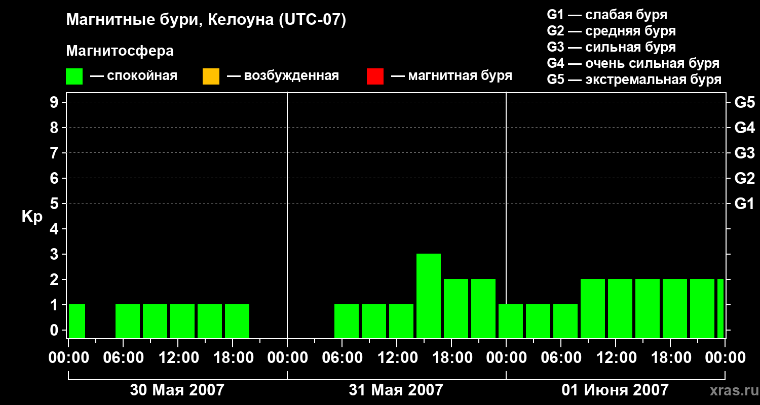 Магнитные бури в Келоуне — 1 июня 2007 года