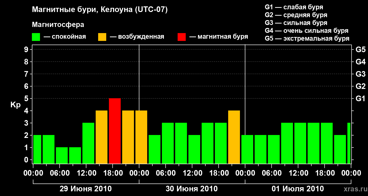Магнитные бури в Келоуне 1 июля 2010 года