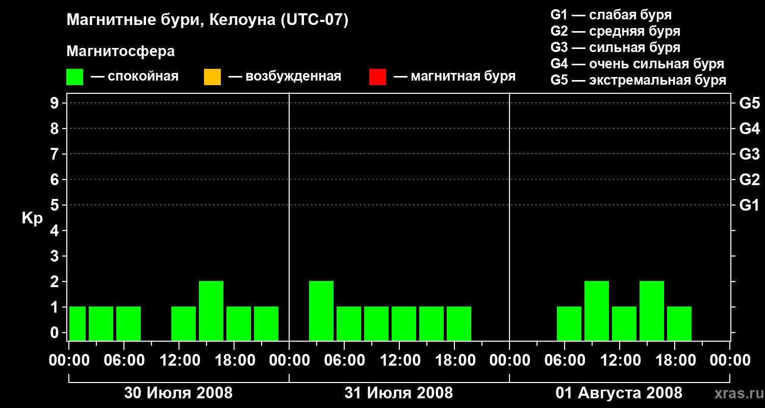 Магнитные бури в Келоуне 1 августа 2008 года