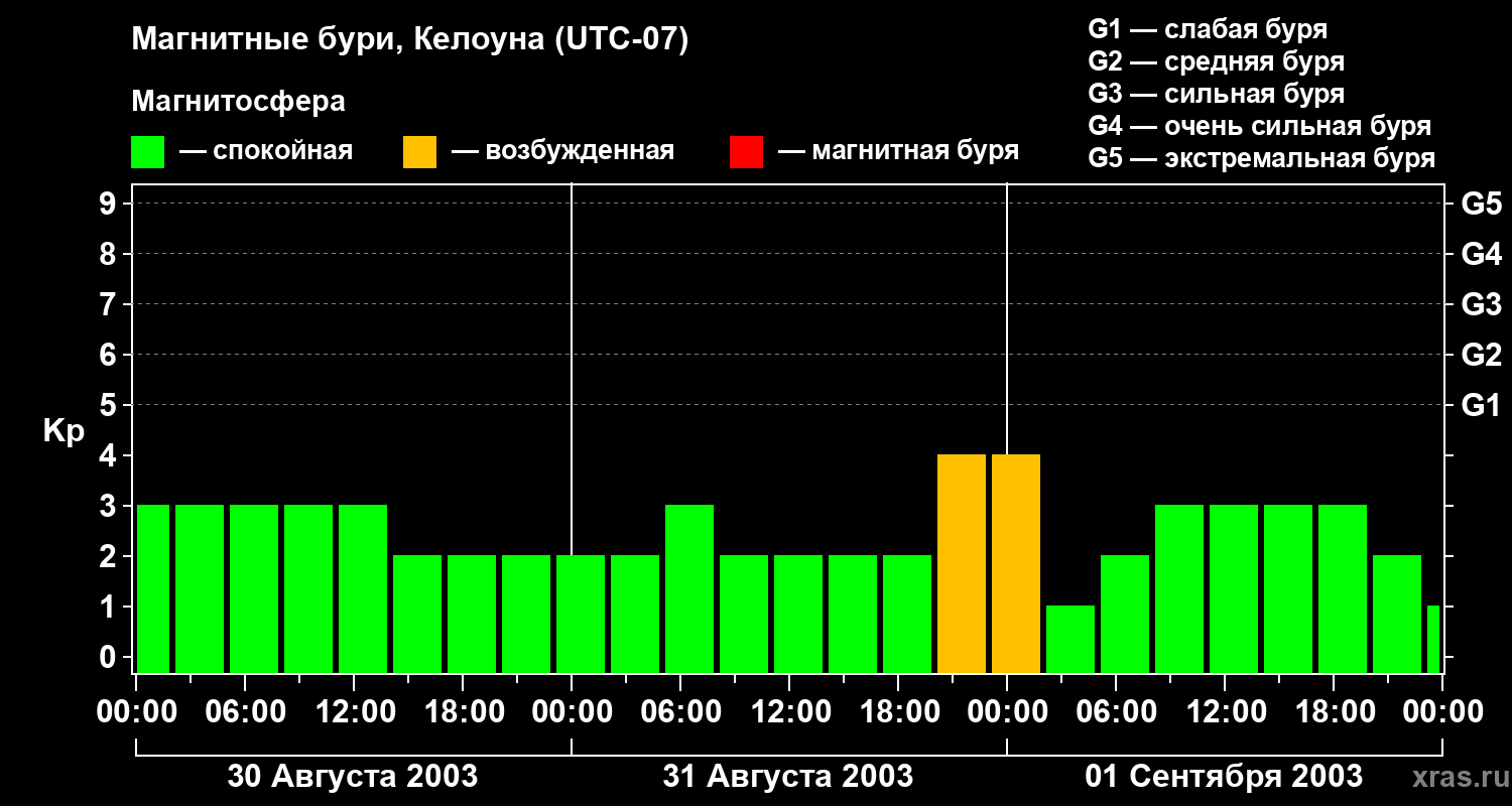 Магнитные бури в Келоуне — 1 сентября 2003 года
