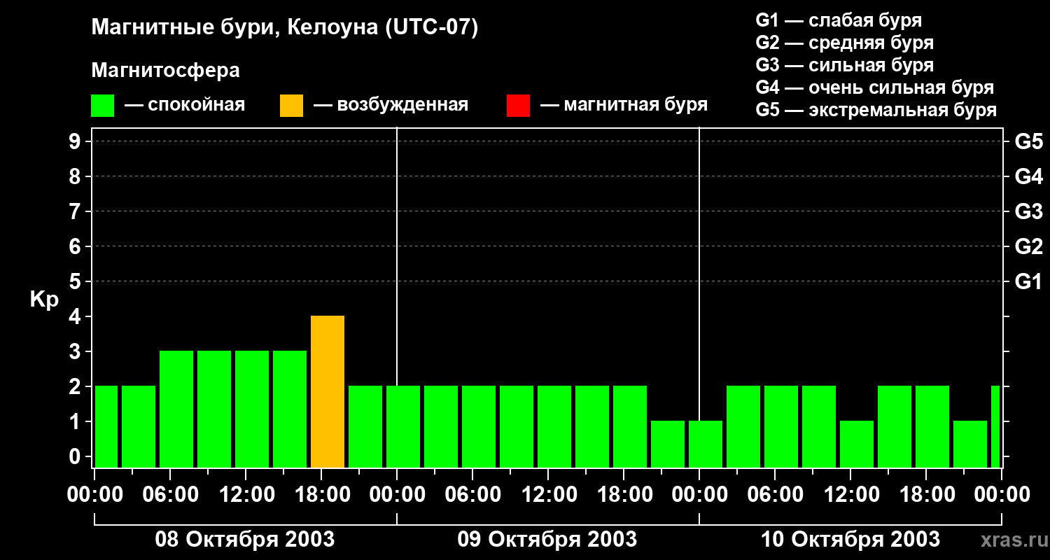 Магнитные бури в Келоуне — 10 октября 2003 года